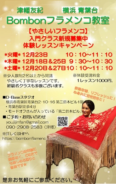 横浜青葉台Bombonフラメンコ教室でソロライブを開催しました。